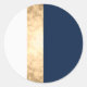 Pegatina Redonda dorado falso elegante, azul marino, rayas blancas