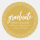 ¡Selle sus sobres de graduación con elegantes pegatinas de graduación personalizados! Los pegatinas de graduación presentan "graduados" en un moderno guión en blanco con un fondo de rociadores dorados y blancos. Personalice los sellos para sobres de graduación de oro añadiendo el nombre del graduado, el nombre de la escuela y el año de graduación. ¡Los pegatinas también son geniales para sellar los bolsos a favor de la fiesta de graduación!