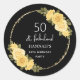 Pegatina Redonda Dorado negro y floral amarilla 50 cumpleaños