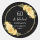 Pegatina Redonda Dorado negro y floral amarilla 60 cumpleaños