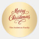 Pegatina Redonda Dorado rojo Feliz Navidad