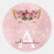 Pegatina Redonda Dorado Rosa Rosa Esparkle Kitty Monograma Cumpleañ