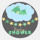 Pegatina Redonda Dormido Oso De Teddy Verde En Nube Baby Shower