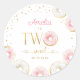 El oro blanco rosado se deshace de dos pegatinas dulces de segundo cumpleaños fiesta. Diseño moderno con acuarelas rosas y donuts blancos. Caracteriza el tipo de letra del script de tipografía. Perfecto para una elegante celebración del cumpleaños de las primeras chicas.