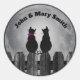Pegatina Redonda Dos gatos a la luz de la luna con nombres