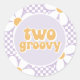 ¡dos groovías! Impreso retro de damero con pegatinas de fiesta de cumpleaños de Daisies en morado.
