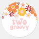 Pegatina Redonda Dos Groovy Retro Floral segundo cumpleaños