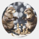 Pegatina Redonda Dos Otras Jugando Ajedrez,