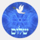 El "shalom" (paz hebrea) y la paloma con un poco de rama de olivo en el pico sobre un agradable fondo fractal azul y blanco que recuerda a las alas de los pájaros.