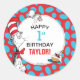Pegatina Redonda Dr. Seuss | Gato en cumpleaños Gorra