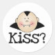 Un pequeño Drácula pregunta "¿Beso?" en camisetas Drácula de Halloween y otros artículos de Halloween a los que puedes añadir un nombre.