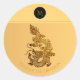 Pegatina Redonda Dragón chino de oro Papercut Monograma cumpleaños
