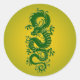 Pegatina Redonda Dragón chino tribal verde y amarillo