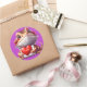 Pegatina Redonda Dragón con barba dulce San Valentín púrpura