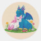 Pegatina Redonda Dragón Cuto y Unicornio Enamorados