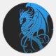 Pegatina Redonda Dragón tribal volador - azul sobre negro