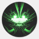 Pegatina Redonda Dragón verde alienígena con ojos brillantes