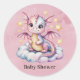 Pegatina Redonda Dragón Whimsical En Un Baby Shower En Nube