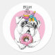 Imagen De Afishka | Shutterstock. ID de la imagen: 1229091874 | Perrito adorable Pug con una máscara de unicornio: peluca, cuerno y con un donut rosado. Sueño hecho realidad - cita con letras.