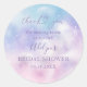 La ducha de novia es de ensueño y romántica y da la bienvenida a un pegatina con un ilustracion acuático de color rosa, violeta y azul con estrellas y nubes.