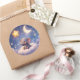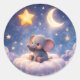 Make a stunning first impression with these premium large round stickers perfect for use as elegant envelopes or statement gift labels. This that includes six large 7.6 cm stickers on a single sheet featuring the beloved watercolour baby elephant resting on a soft cloud under a glowing moon and golden stars the high gloss finish on bright white paper ensures the rich indigo tones and artistic textures stand out beautifully whether you're selling a special birthday card a baby shower invitation or decorating a boutique gift box these high-quality stickers at a final touch of whimsy and professional charm to your station