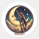 Pegatina Redonda Dreamy Moon & Dog Climbing Ladder