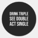 Pegatina Redonda Drink Triple See Double Act Single - Funny Drinkin