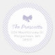 Pegatina Redonda Ducha de bebé con arco púrpura de Gingham
