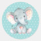 Pegatina Redonda Clásica Ducha de Bebé de Elefante Aqua