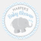 Pegatina Redonda Ducha de bebé de elefante gris y azul moderno para