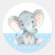 Pegatina redonda clásica de ducha de bebé de elefante niño azul