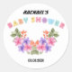 Pegatina Redonda Ducha de Bebé Niña Floral Rosa Suave