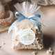 Una elegante pegatina redonda para ducha de bebé diseñada con calabazas de acuarela azules y blancas. La mayoría de las letras son editables: haga clic en el botón "Personalizar más" para editar. Artículos coincidentes en nuestro diseño de fiesta Cava