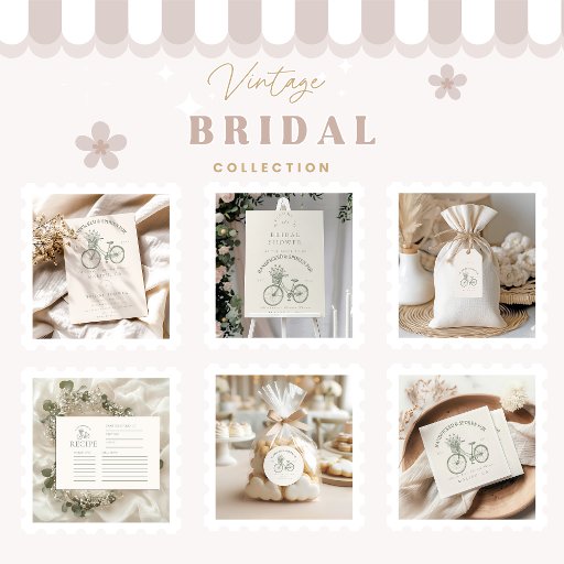 Celebre la futura novia con este encantador diseño de ducha de novias floridas, con una bicicleta de época que lleva una canasta de flores silvestres. La suave paleta verde sabio y el marfil evocan un ambiente romántico en el campo, lo que lo convierte en el lugar perfecto para un mercado agrícola o un evento inspirado en el jardín. Personalice los detalles de su evento para una reunión elegante y memorable.