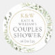 Pegatina Redonda Ducha de Boda para Parejas con Follaje de Monogram
