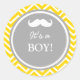 Un producto para la ducha para bebés con bigote y chevron en combinación de colores dorados amarillos y grises