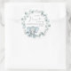 Pegatina amable para sus invitaciones a la ducha de bebés, tarjetas de agradecimiento y favores de fiesta con "Un dulce cacahuete está en camino" en una mezcla de tipografía simple y un guión elegante con un chorro de corazón y una acuarela de un elefante bebé azul sobre una guirnalda de vegetación eucaliptus verde salado. Personalice el nombre de la futura madre y la fecha de la ducha.
