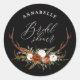 Pegatina Redonda Ducha de novia botánica rústica negra ciervo
