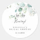 Pegatina Redonda Ducha de Novia Brindis con Eucalipto Verde