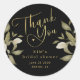 Elegante y elegante, elegante y sofisticado pegatina negro de agradecimiento por una lujosa ducha de novia vintage decorada con un guión falso de oro y follaje botánico verde de marfil y salvia. +++++++++ Tenga en cuenta que el color de fondo se puede cambiar para que coincida con el esquema de color del boda. Si se siente cómodo al hacerlo, puede cambiarlo después de seleccionar la opción de TI PERSONALIZAR. ++++++++ Si necesita ayuda, envíe un mensaje al diseñador o acceda al servicio GRATIS de Zazzle Live Designer.
