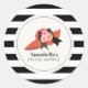 Esta etiqueta elegante y chic para ducha de novia presenta un gran sombrero rojo estilo derby con rosas y un lazo/cinta negro sobre un fondo blanco con rayas negras. Personalice según sus necesidades. Puede encontrar más productos coincidentes en mi tienda.
