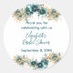 Pegatina Redonda Ducha de Novia Floral Acuarela Verde Azul y Dorado