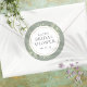 Pegatina Redonda Ducha de Novia Hojas de Primavera Suave Plata