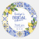 Pegatinas redondas clásicas para despedida de soltera con limones en mosaico azul italiano