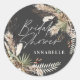 Pegatina Redonda Ducha de novia pampas pasto moderno negro elegante
