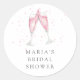 Pegatina Redonda Ducha de novia personalizada de champán rosa