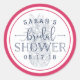 Los pegatinas de ducha de novia personalizados coinciden con nuestra colección de piña rosada y marina de moda preppy y cuentan con un brillante borde rosa, un ilustracion de silueta de piña y el nombre y la ducha del invitado de honor en azul marino clásico.