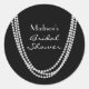 Largas cuerdas de perlas sobre fondo negro decoran este elegante Pegatina Bridal Shower, haciéndolo perfecto como sello para sobres, o accesorio para favores. Esto forma parte de la colección Pearl Boda de 1920. Si necesita más elementos para su evento, póngase en contacto con nosotros en prettyfancyinvites@gmail.com con su solicitud.