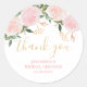 Pegatina Redonda Ducha dorada de novia floral rosa
