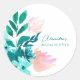 Pegatina Redonda Ducha Nupcial Floral Acuarela Rosa Verde Personali